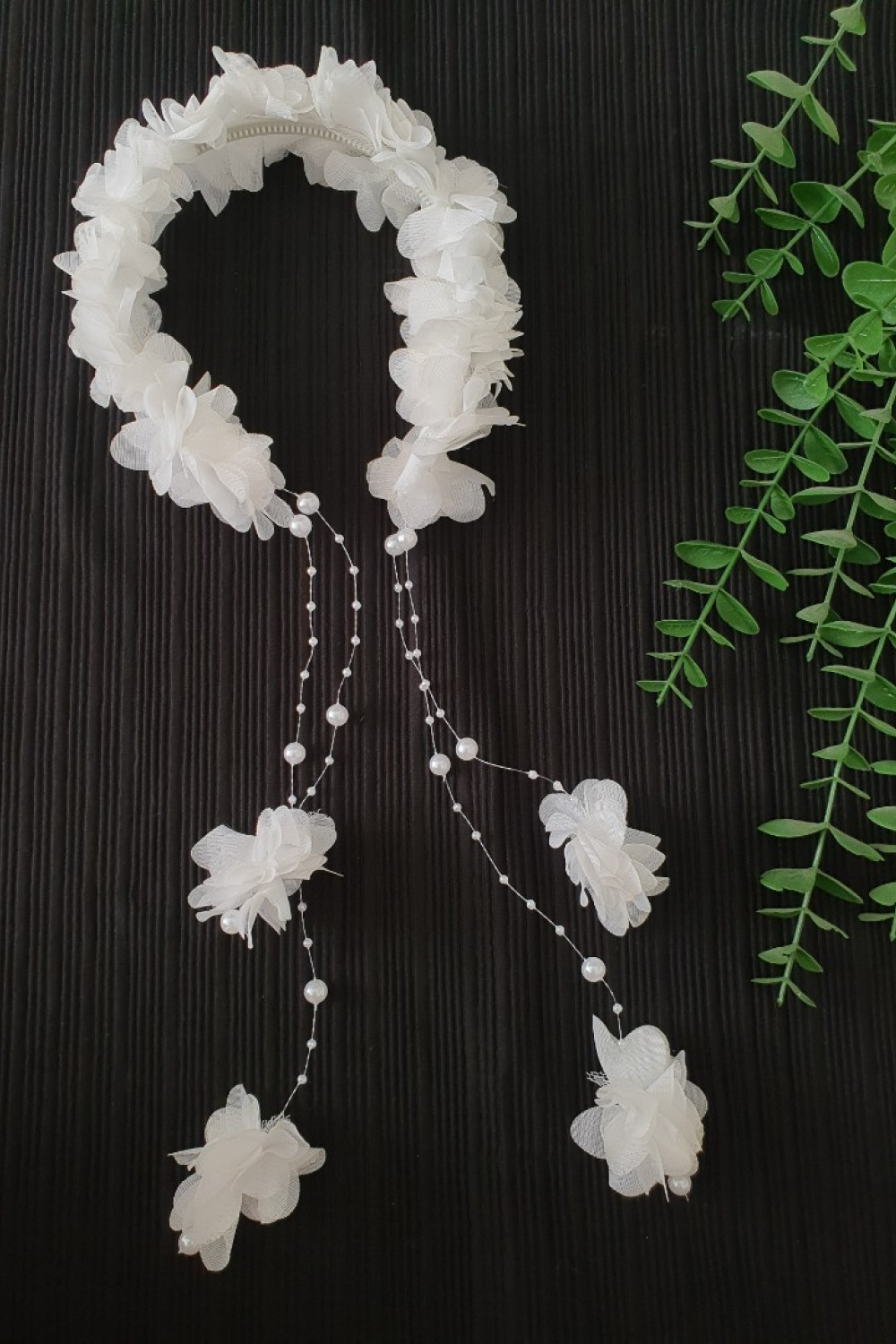 Özel günlerinizde zarafeti ve ışıltıyı bir arada sunan Çiçekli İncili Taç, el işçiliğiyle hazırlanmış şık bir aksesuardır. Her detayında incelik ve estetik barındıran bu taç, kına gecesi, lohusa dönemi, düğün, nişan, mezuniyet ve özel davetlerde tarzınıza zarif bir dokunuş katar.