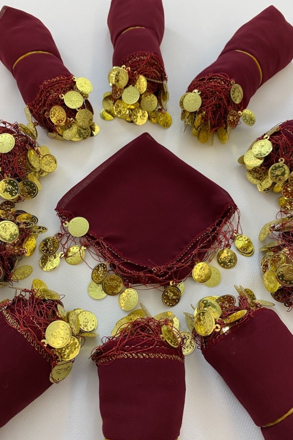 Bordo Şifon Gelin Halay Mendili, Hediye Mendil 10 Adet