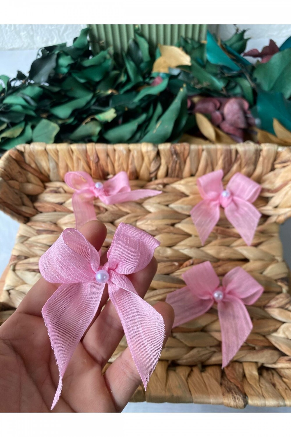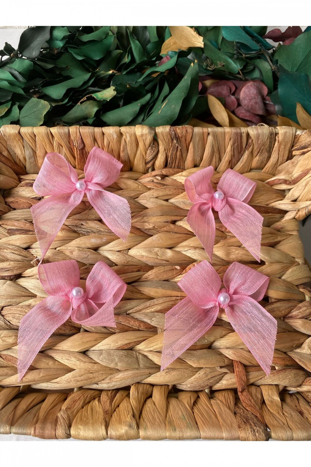 - Zarif inci detayları ile süslenmiş, pembe keten kurdeleler, her türlü etkinlikte şıklığınızı tamamlar.; - 25 adet hazır fiyonk, çeşitli dekorasyon projelerinizde kolayca kullanabileceğiniz pratik bir seçenektir.; kesilebilir ve kişiselleştirilebilir.; - Türkiye menşeli bu ürün, yerel kaynaklı malzemelerle üretilmiştir ve sürdürülebilir moda anlayışına katkıda bulunur.
