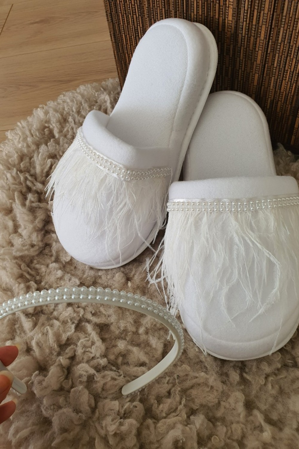 Lohusa Terlik ve Taç Seti – Özel Tüy Serisi | Hamile ve Bride Model