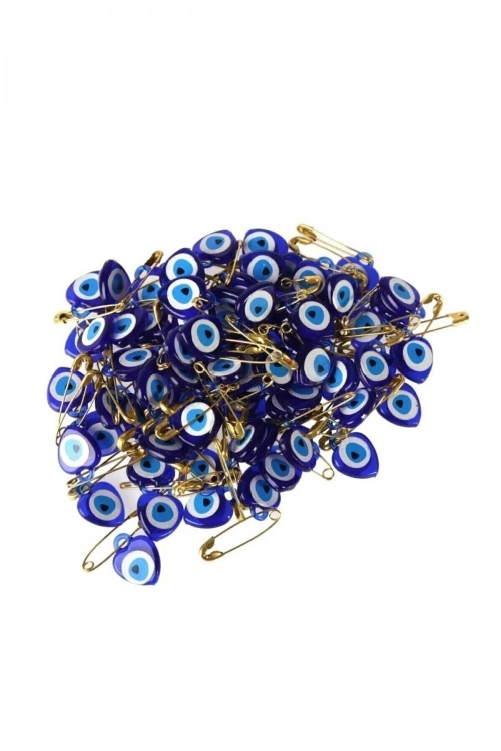 Nazar Boncuğu Sarı Çengelli Iğneli Lacivert Boncuk 50 Adet