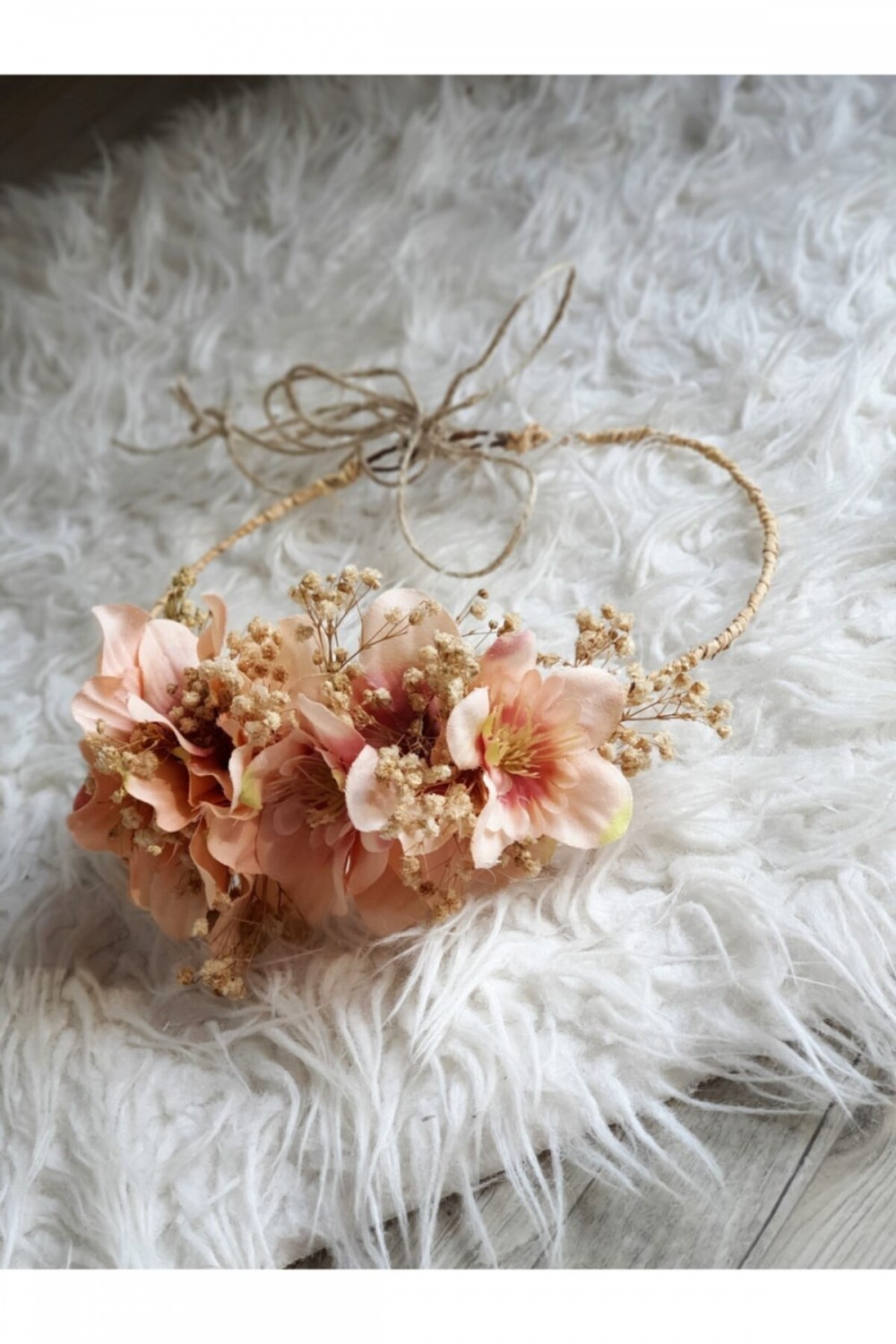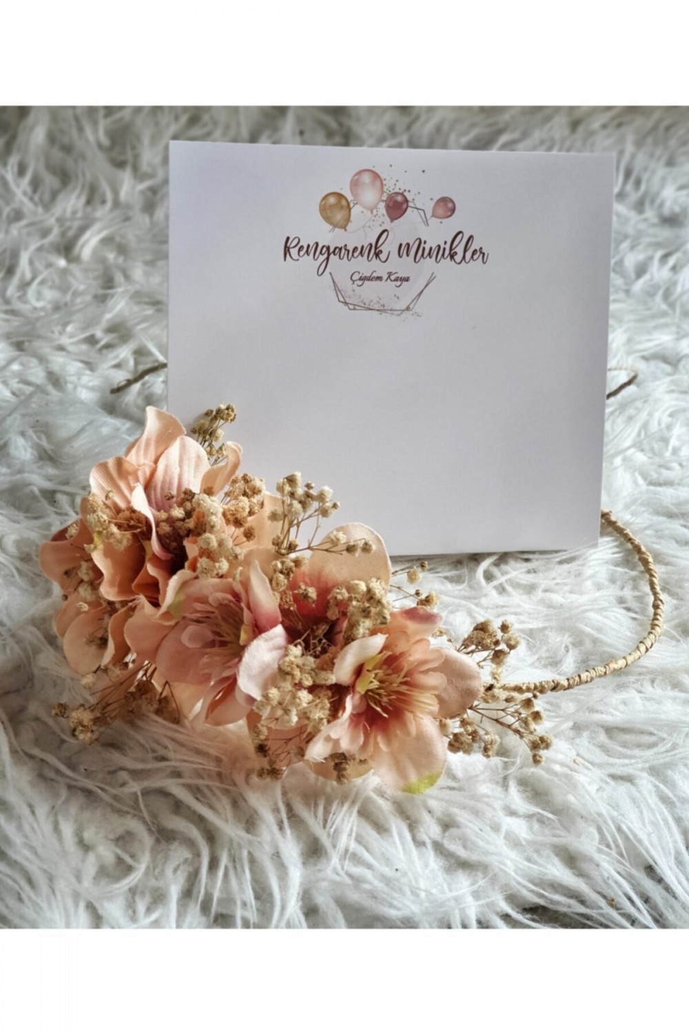 Somon Renk Kuru Çiçekli Lohusa Tacı ( Anne Tacı )