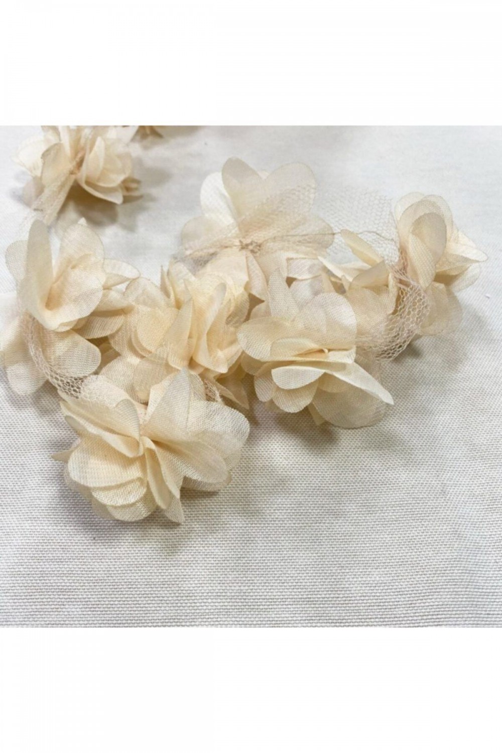 Krem Lazer Gül 2m Lazer Kesim Gül Süsleme Paketleme Malzemesi 24 Adet Organze Kumaş Yapay Çiçekler